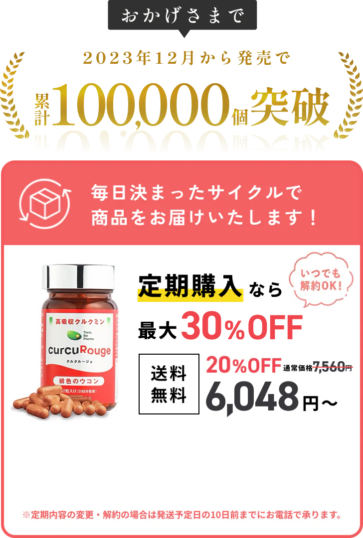 何が違うのですか?クルクルージュは、特許出願中の「アモルファス化技術」を採用し、通常のクルクミンよりも202倍の吸収率を実現しています。少量で効率的に体内に届けることができるのが特長です。